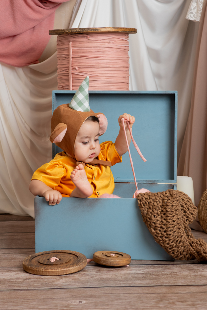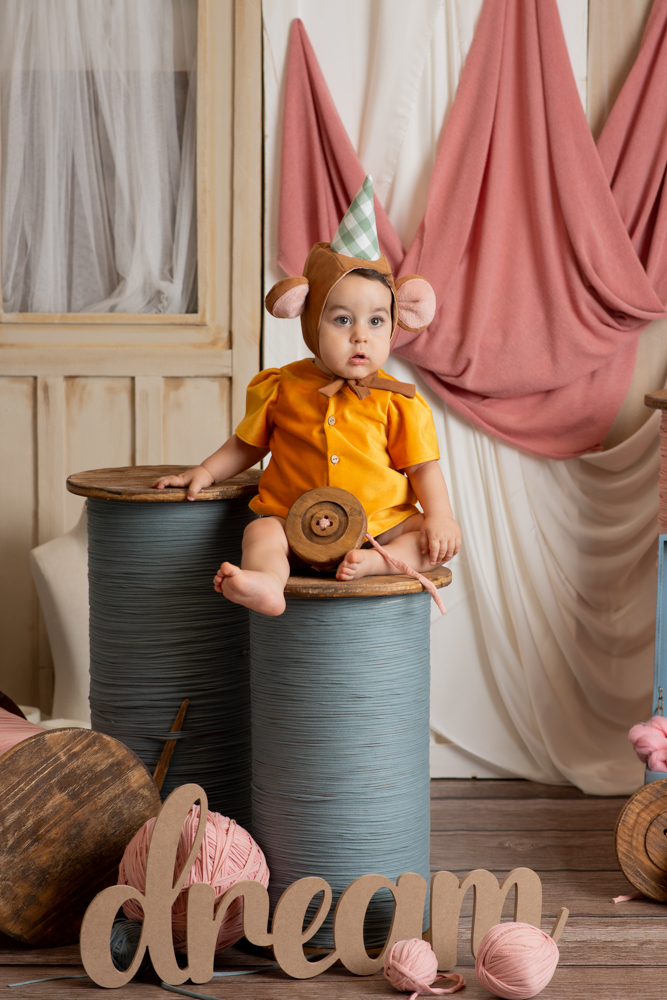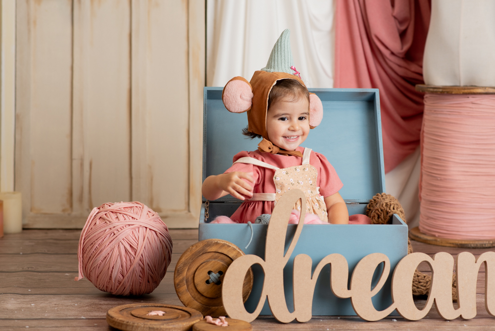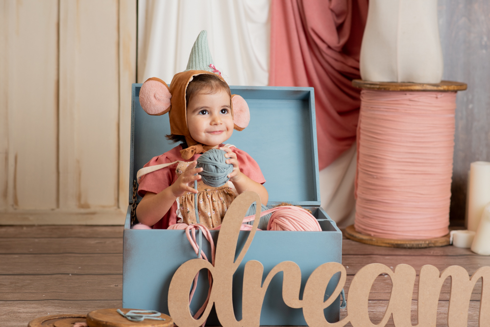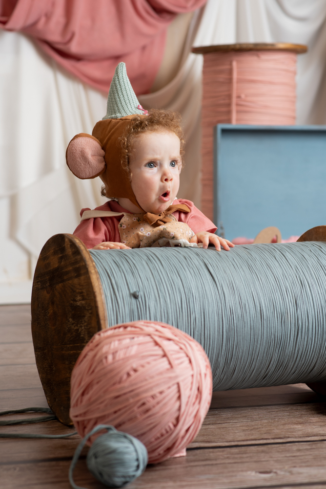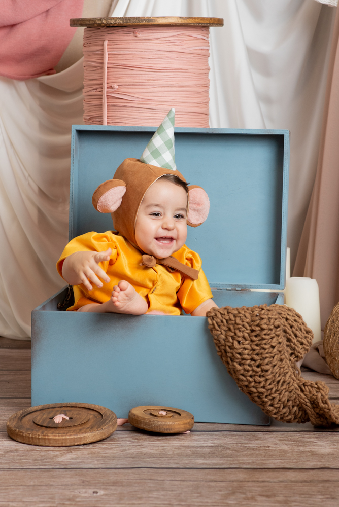 Hay momentos que parecen sacados de un cuento, y esta vez, tu hijo o hija se convierte en el verdadero protagonista. Inspirada en los simpáticos ratoncitos que tejen el traje de Cenicienta, esta sesión recrea un universo mágico lleno de hilos, texturas suaves y una escenografía única que invita a soñar.