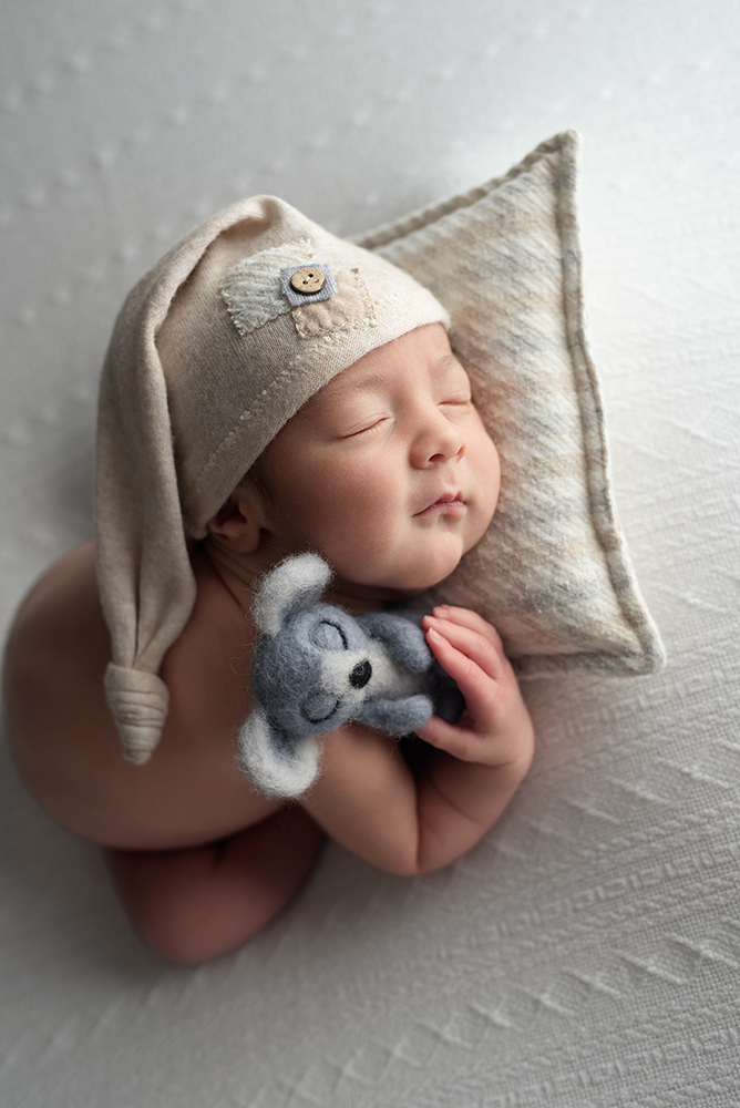 Las sesiones se realizan preferiblemente entre los 5 y 15 días de vida, cuando los bebés duermen profundamente y aún conservan esa postura fetal tan característica. Son momentos que pasan en un suspiro, pero que pueden quedarse contigo para siempre.