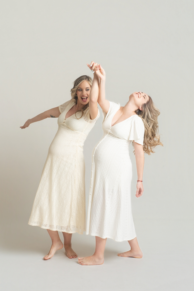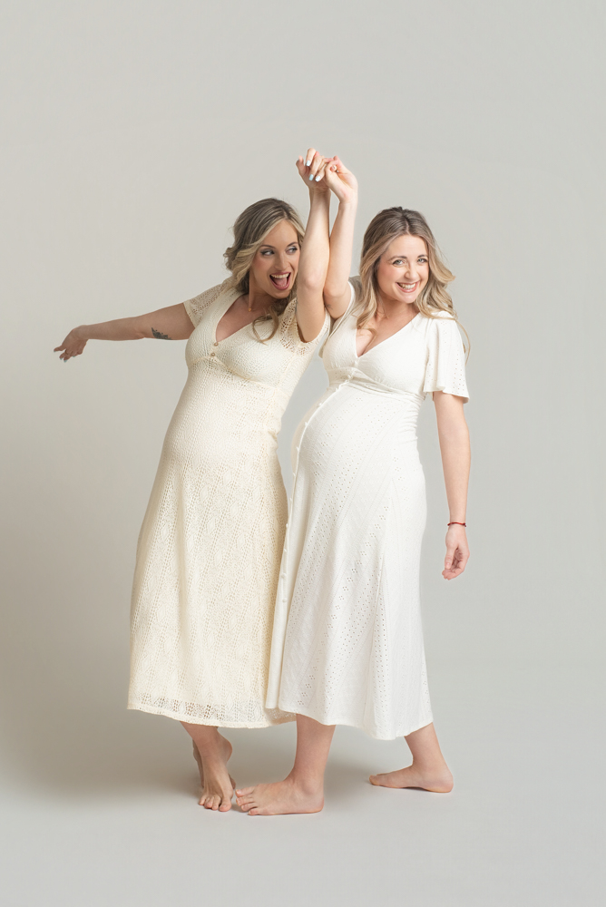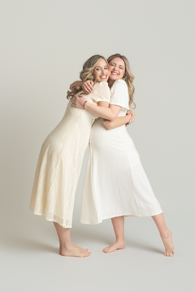 En el caso de dos hermanas, lo más habitual es buscar un punto intermedio en el que ambas coincidáis en esa franja. Si los embarazos están en semanas muy diferentes, no hay problema: se puede adaptar la sesión para que funcione igualmente bien para las dos.
